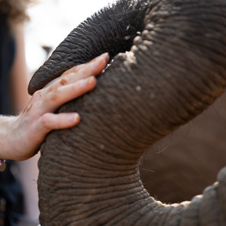 Nach den Elefanten trafen wir Raha, ein süßes kleines schwarzes Nashorn, das sofort unsere Herzen eroberte. Sie war schüchtern, aber so friedlich und genoss die Aufmerksamkeit und sanften Berührungen. So nah und persönlich mit diesen unglaublichen Tieren zu sein, war ein Erlebnis, das wir für immer in Erinnerung behalten werden.